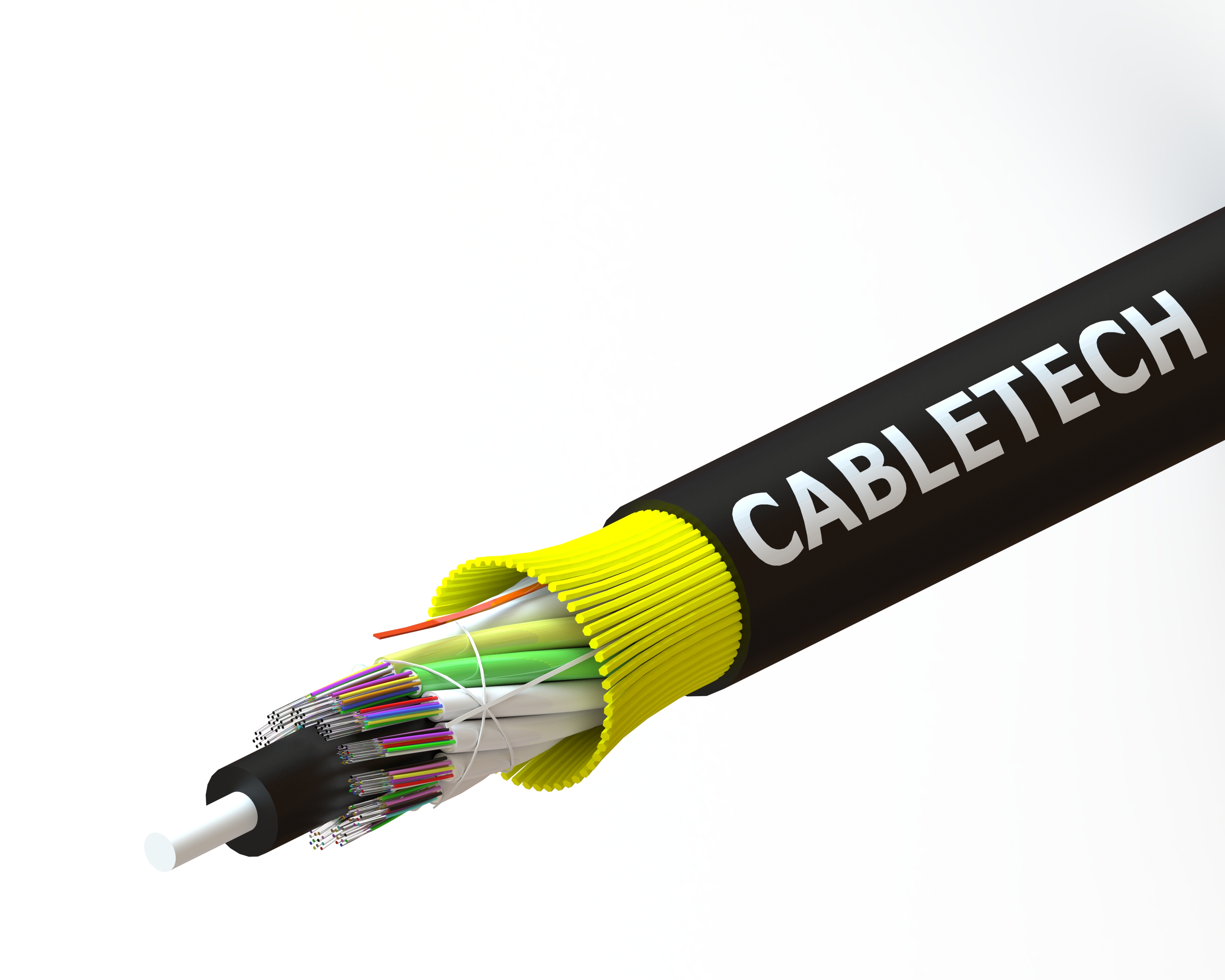 Os Cabos Ópticos Dielétricos para aplicação subterrânea em Duto ou aérea espinado Totalmente Seco da CABLETECH possuem fibras ópticas agrupadas em unidades básicas protegidas por elementos hidro expansíveis, podendo ser constituído por até 288 fibras ópticas monomodo. Possui excelente resistência a tração, devido ao elemento de sustentação central e aos fios de tração sintéticos encordoados ao redor núcleo optico seco, possui também fio de rasgamento. O cabo DD TS recebe revestimento externo com material termoplástico, resistente a intempéries e com proteção contra raios UV, podendo opcionalmente ser retardante a chama.