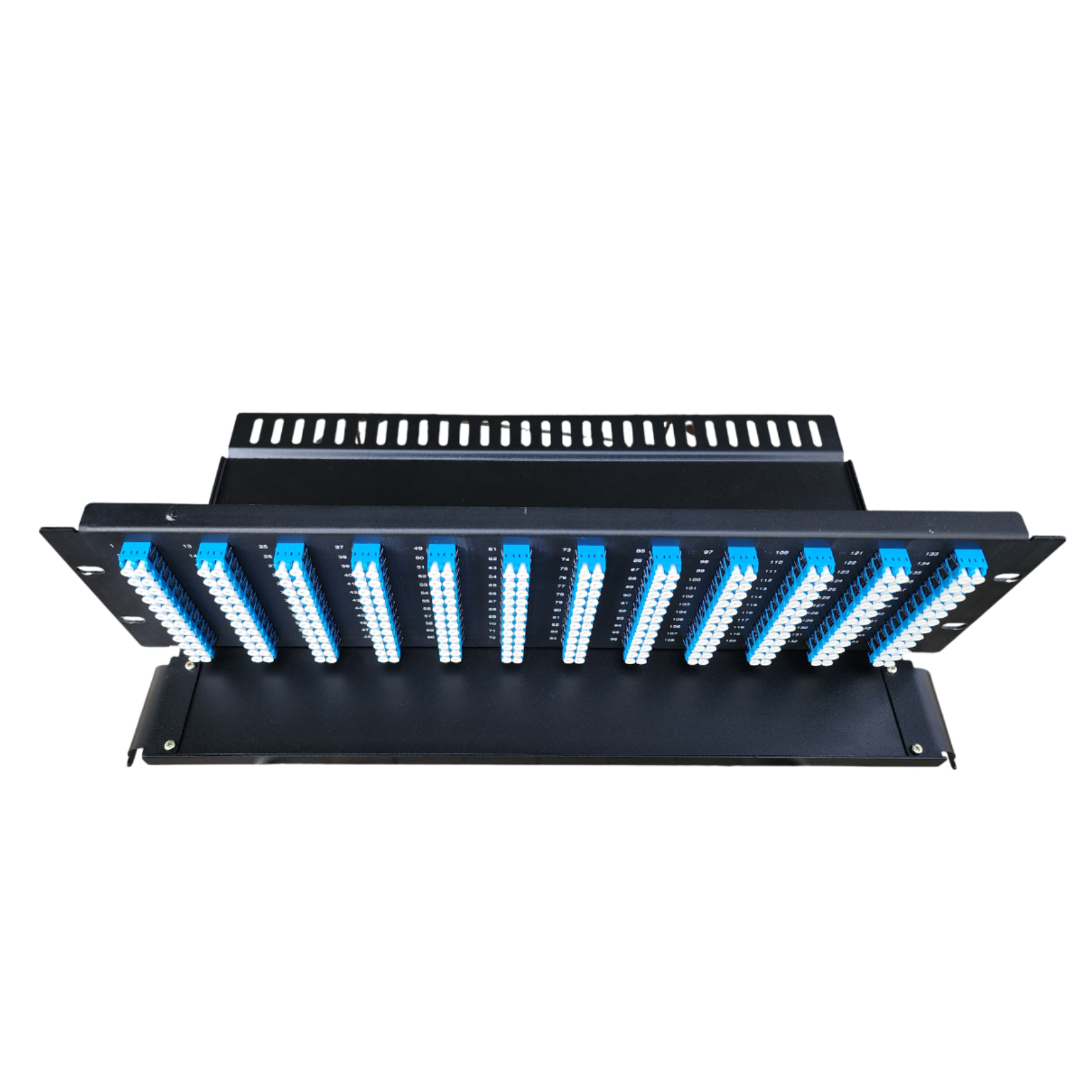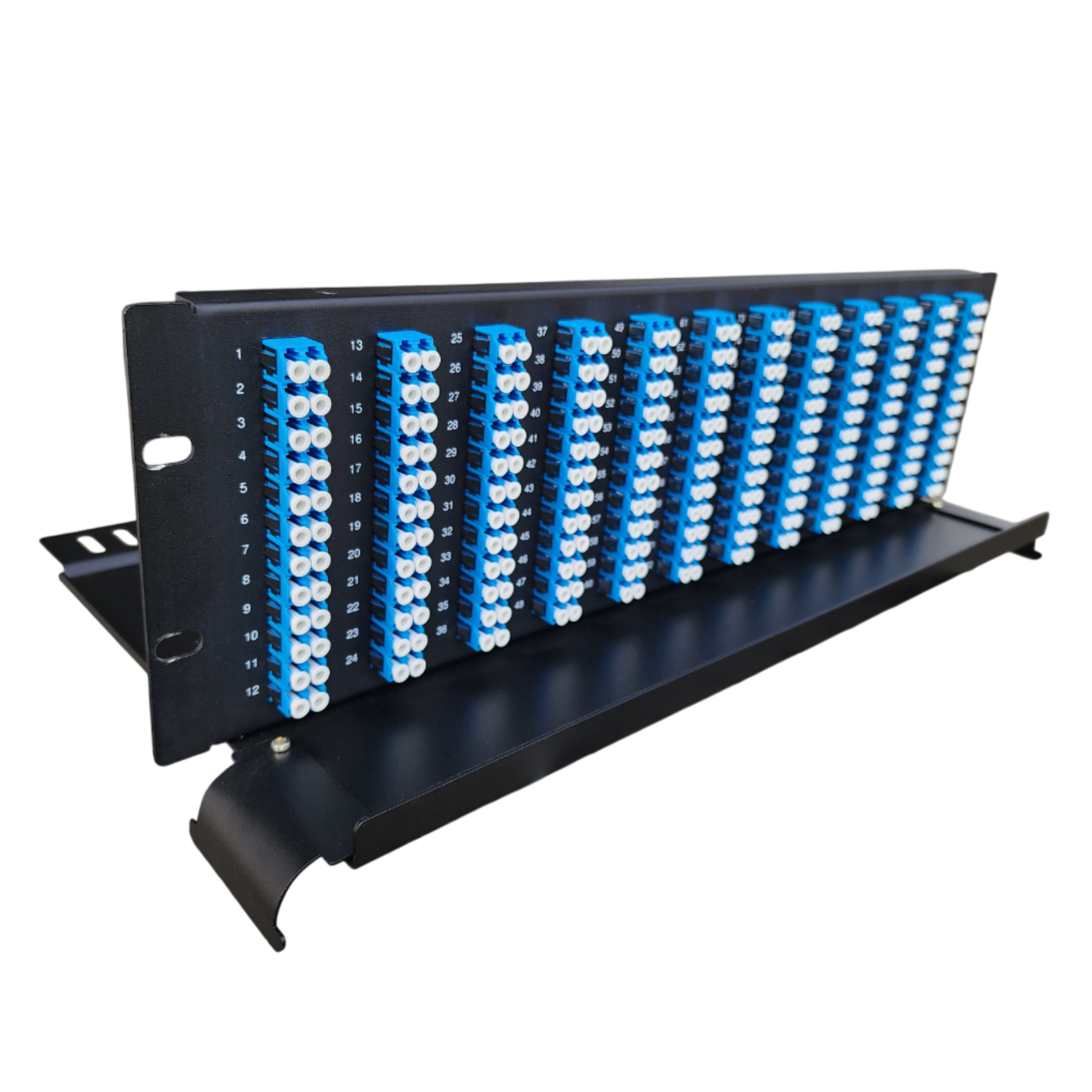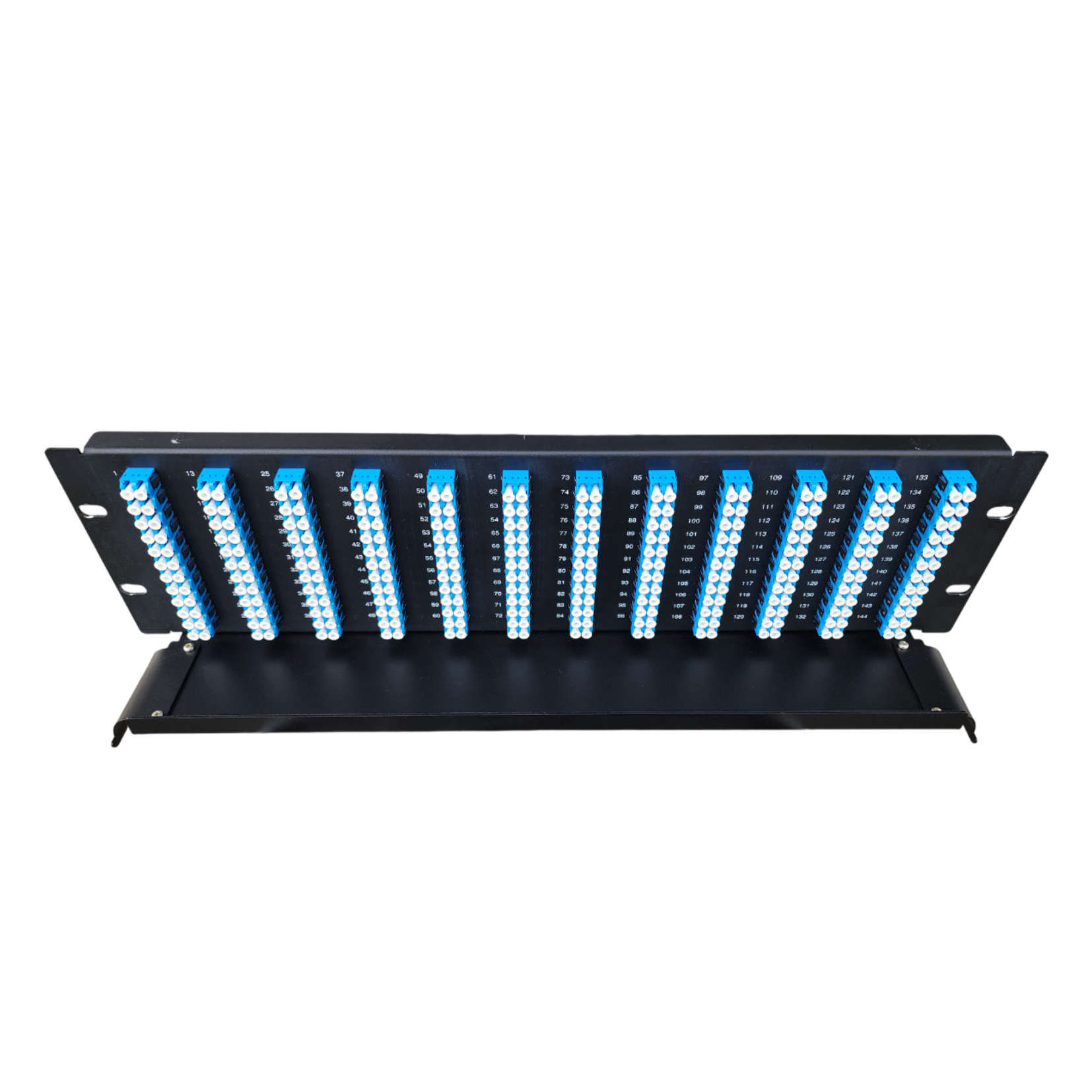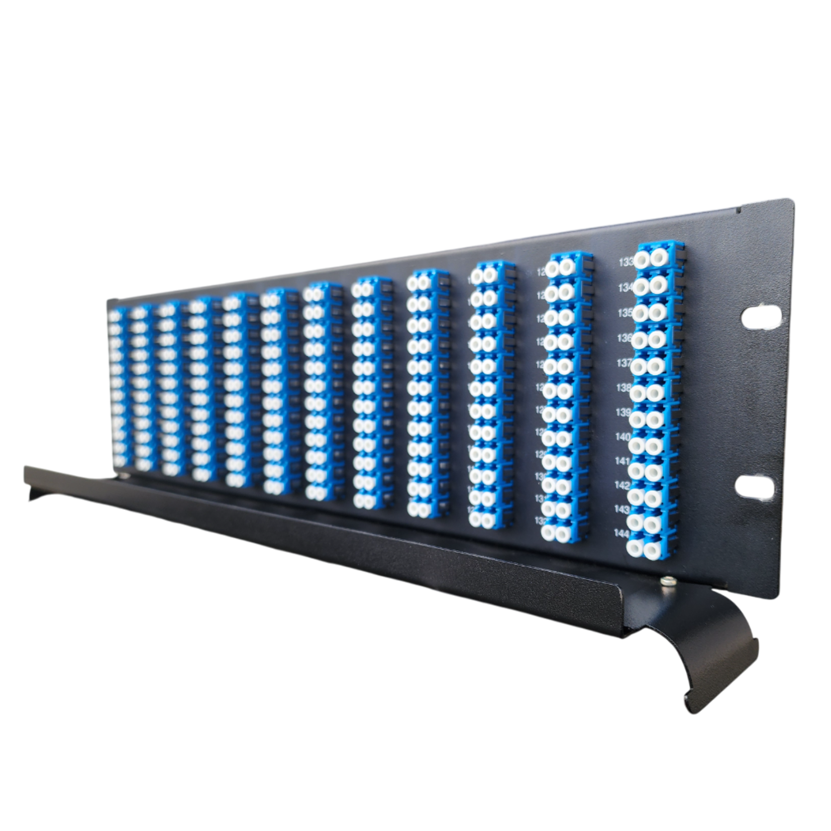 O Riser Frame 3U da Cabletech é um painel interno óptico de altura 1U para Racks de 19”, ideal para instalações de redes ópticas com conexões tipo Espelhamento. Possui uma bandeja de acomodação de cabos ópticos pré-conectorizados, com capacidade máxima até 144 fibras para adaptador SC Simplex ou 288 fibras para adaptadores LC Duplex.